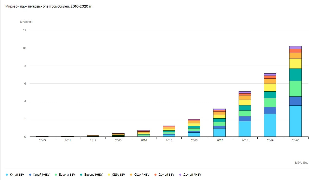 Прибавив за год +43%, мировые продажи электрокаров превысили $120 млрд (14 млрд из них - госсубсидии). Число электромобилей уже более 11 млн (1% всего автопарка).