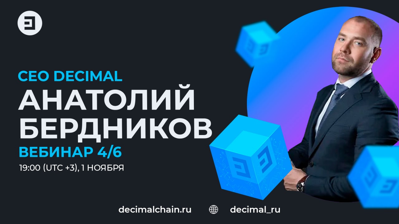 📆 Напоминаем, что во вторник, 1 ноября в 19:00 (МСК) состоится четвертая АМА-сессия с Анатолием Бердниковым, СЕО Decimal.