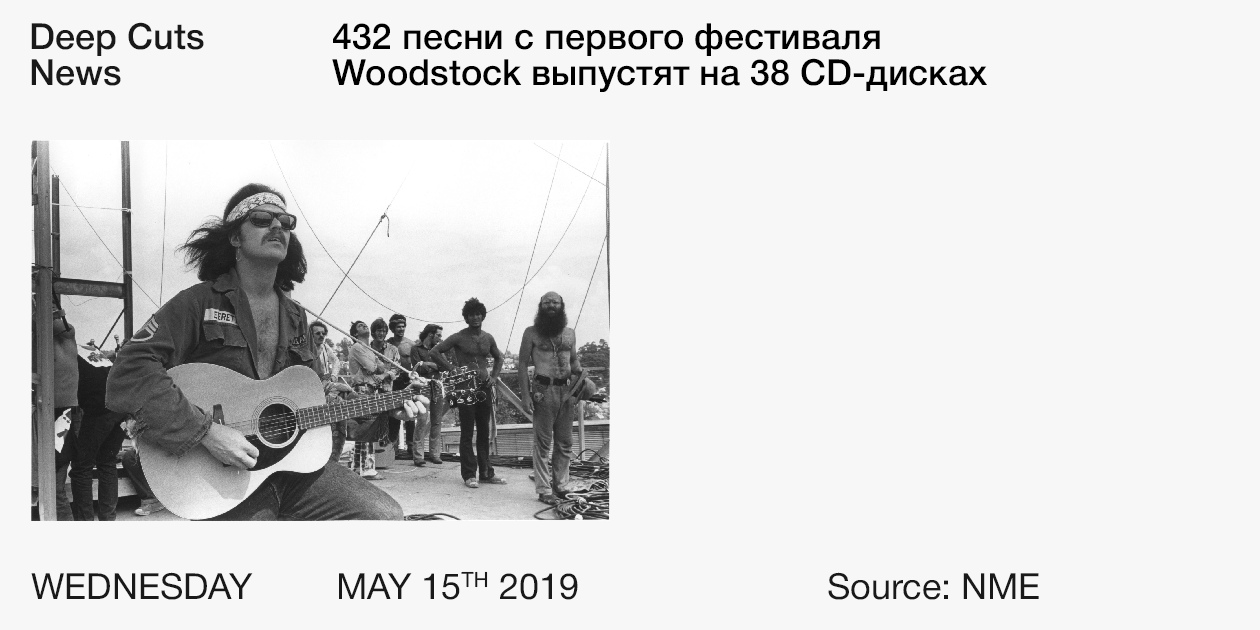 Компания Rhino анонсировала бокс-сет в честь 50-й годовщины рок-фестиваля Woodstock 1969 года. Фестиваль проходил в горах Катскилл в штате Нью-Йорк в период с 15 по 18 августа 1969 года и стал самым известным событием «Лета любви». Более 400 000 человек собрались, чтобы увидеть выступления Джимми Хендрикса, The Who, Santana, Crosby, Stills, Nash & Young, Дженис Джоплин, Grateful Dead, Джоаны Баэз и многих других.