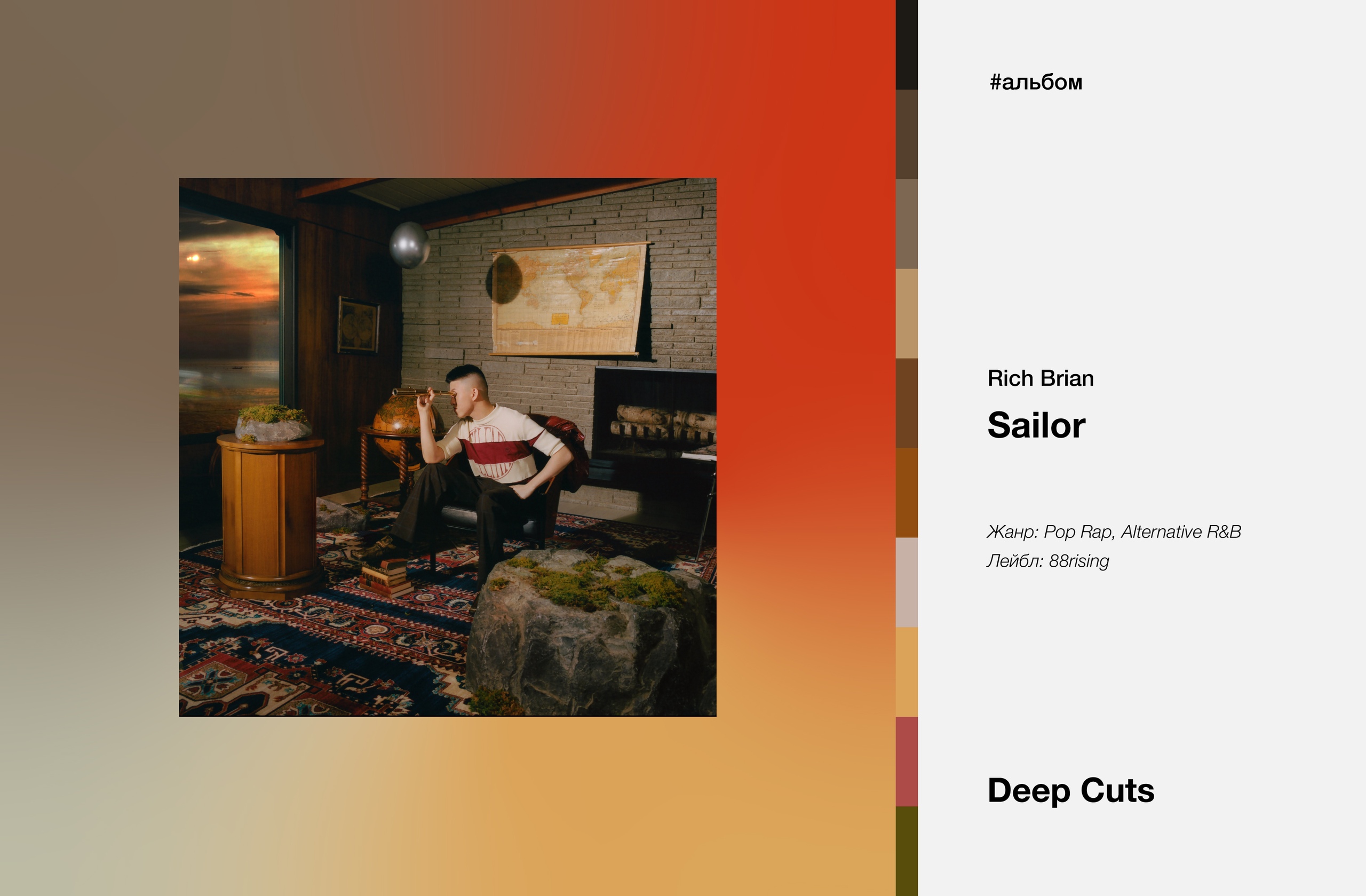 Один из ведущих артистов набирающего популярность объединения 88rising представил свою новую пластинку Sailor. Несмотря на то что альбом не имеет явного концепта, он является логическим продолжением дебютной работы артиста Amen, так как в Sailor музыкант также говорит о переезде из Индонезии в США, становления себя в «новом» мире, одиночестве и повсеместных попытках идти в ногу с тенденциями. Также он продолжил сотрудничество со значимыми артистами: гостями релиза стали Bekon, который также является сопродюсером альбома, легендарный рэпер RZA и, уже традиционно, товарищ артиста по лейблу Joji.
