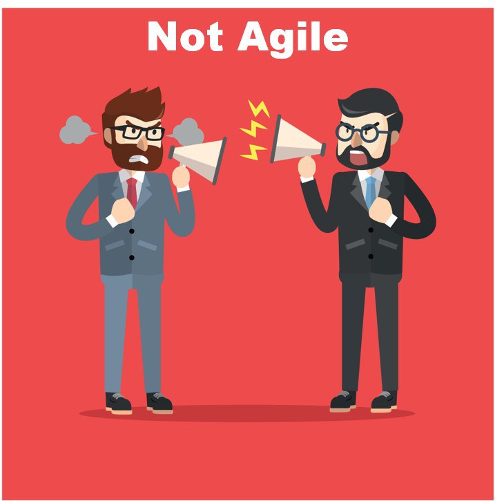 Кундалик митинглар, йиғилишлар ва Agile Devolopment асосларини ўз иш фаолиятида қўллаш албатта яхши, аммо, лойиҳа бошида турган "катталар" иш кетишини монополистик тарзда олиб бориш ёки фақат "ура-ура, биз ундай қиламиз, бунақа қилсак жуда зўр бўлиб кетади" каби осмоний гаплар билан мажлис ўтказишга мажбурлаш, вақтни ўғирлаш орқали дастурчиларниям кўчадаги гапчи хотинлардан фарқини қолдиришмайди. Баъзида "на@#$ ишинггаям" дегинг келади бекор ўтираверганинг жонингга текканидан...