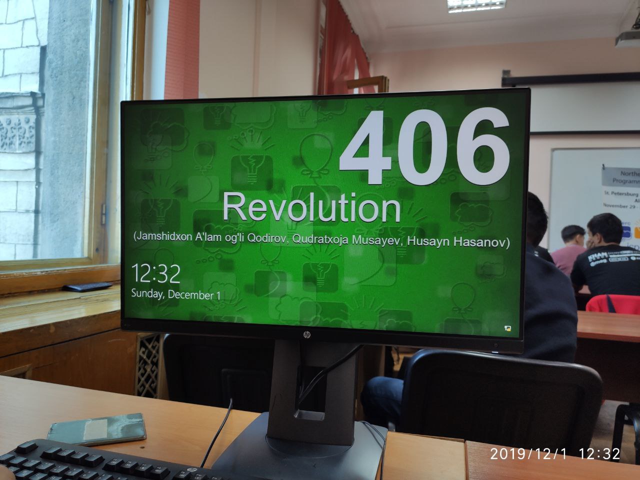 Айни дамда ACM ICPC дастурлаш бўйича жаҳон чемпионатининг ярим финали Олмота, Санкт-Петербург, Барнаул ва Тбилиси шахарларида бир вақтда бўлиб ўтмоқда. Олимпиаданинг ярим финал босқичига ўтган Ўзбекистонлик жамоалар сони 22 та, уларнинг орасида бизнинг Revolution Group жамоамиз аъзолари Мусаев Қудратхўжа ва Ҳасанов Ҳусайнлар "Tashkent UIT: Revolution" номи остида қатнашишмоқда. Уларга омадлар тилаб қоламан!
