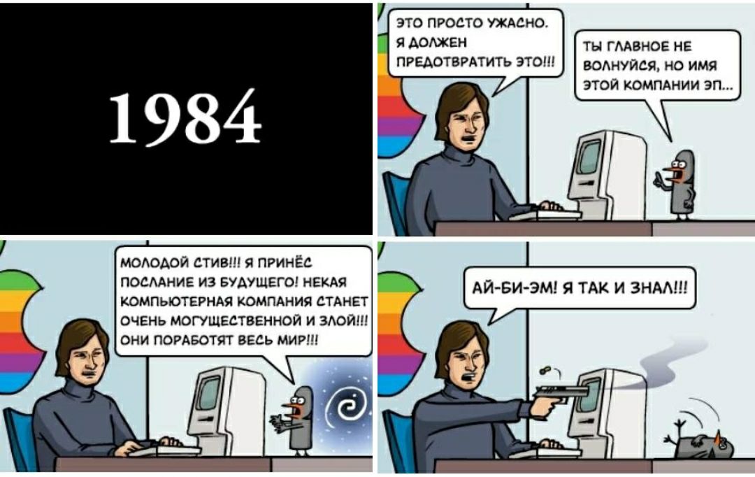 - Молодой Стив! Я принес послание из будущего! Некая компьютерная компания станет очень могущественной и злой!!! Они поработят весь мир!