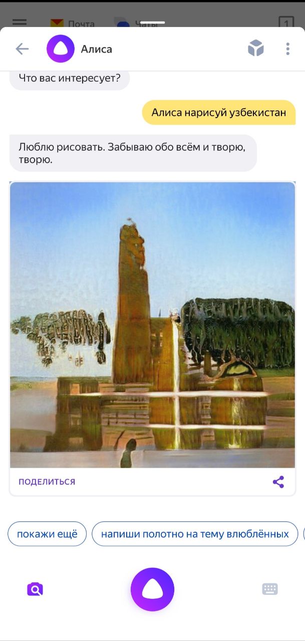 Делает он это с помощью двух нейросетей, обученных на работах художников XX века. Чтобы получить шедевр, нужно просто сказать «Алиса, нарисуй *тема картины*».