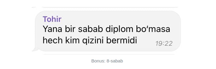"Diplom bu sening nimanidir bilishingni emas, nimadir o'rganishga vaqting bo'lganini ko'rsatadi"