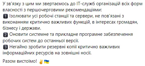 ‼️Держспецзв’язок звернувся до всіх ІТ-служб України