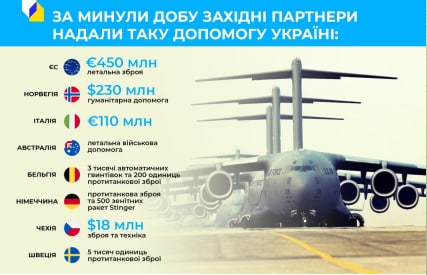 💪За добу Україні дали тисячі одиниць зброї та €340 млн допомоги