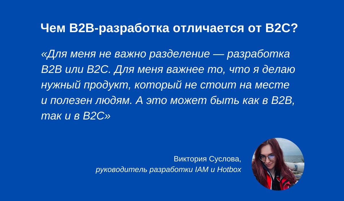 Например, вот что думает Виктория о разнице разработки B2B и B2C.