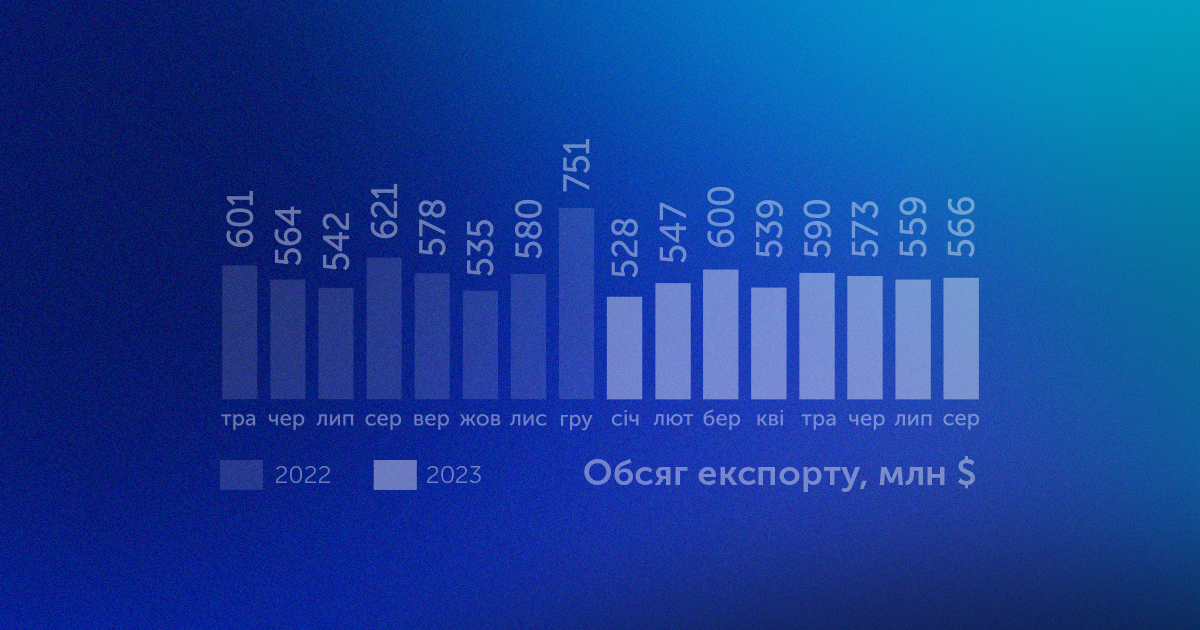 У серпні цього року обсяг IT-експорту менший на 8,9% або ж $55 мільйонів у порівнянні з серпнем 2022, повідомляє Львівський ІТ Кластер, посилаючись на дані НБУ.