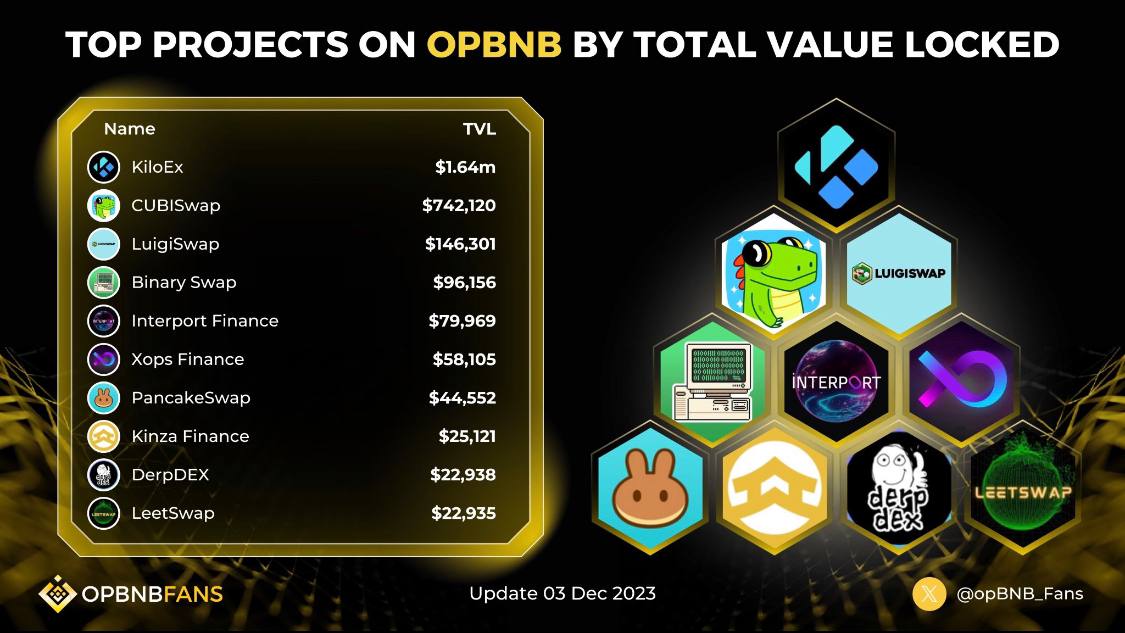 На данный момент TVL проекта $2.1млн, а у всей экосистемы opBNB, всего $3.5млн. Кол-во пользваотелей увеличилось в несколько раз и теперь составляет 13.5к, а ежедневные объемы $50к