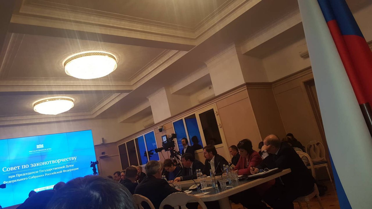 По статистике самый популярный вид протестной акции в Российской Федерации — трудовой протест. В более чем 70% случаев трудовой протест успешен, то есть удовлетворяются требования людей, которые этим протестом занимаются. Суды тоже вполне встают на сторону работника, не на сторону работодателя. Поэтому почва есть".Популярный фотожанр "Мутные картинки из госорганов, на которых мало что видно". Это Совет по законодательству при председателе обсуждает лекарственные поправки. Нюта за большим столом пришла ради закона о паллиативе, который прошел первое чтение, а я, в углу под прикрытием флага, жду, как ворон крови (вар.: как соловей лета) проекта об уголовной ответственности за оборот незарегистрированных лекарств, и при этом мы Тайно Переписываемся. Помните, был такой проект, незаметно принятый 10 января в первом чтении - а злопамятный эксперт всё помнит, и подбивает других членов гражданского общества вмешиваться в законотворческий процесс. Вмешались не без успеха, Нюта отдала письмо про поправки и напомнила про случай Екатерины Коссиевой, на которую летом чуть не завели дело за попытку продать противосудорожное в микроклизмах полицейскому провокатору, да вовремя передумали. Идея в том, чтобы вообще вычеркнуть слово "незарегистрированный" из перечня тех лекарств, за продажу которых наступает уголовная и административная ответственность, а оставить только фальсифицированные, контрафактные и недоброкачественные. Базовый выигрыш в том, что 11 февраля будут большие слушания про паллиатив и лекарственное законодательство, следовательно, наша маленькая беда им. инициатора Яровой (а вы думали кто такое вносит) во втором чтении до этого точно не пройдет, а там может и уберем незарегистрированные из текста вовсе. Когда мы разговаривали после совещания, к нам подошел высокий седой гражданин и сообщил, что поправка про изъятие незарегистрированных лекарств и из УК, и из КоАП уже даже и в комитет внесена ко второму чтению. А кто ж её внес такой хороший? - спросила я. Да я и внес! - внезапно ответил он. Оказался КПРФ-одномандатник из Ульяновска, кандидат медицинских наук (сохраняем инкогнито наших источников).