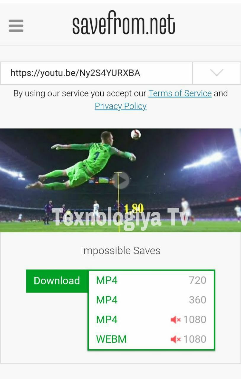 — Ochilgan sahifada siz, mos keladigan video formatini va yuklab olish sifatini tanlab yuklab olishingiz mumkin.