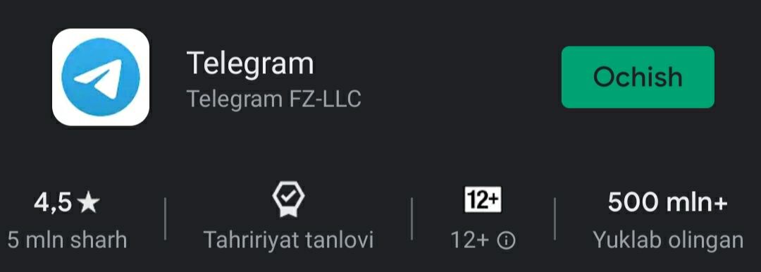 Vau-u-u...! Telegram'ning yana bir muvaffaqiyati. Ushbu ilova Google Play'dagi 500 million marta o'rnatishni yengib o'tdi.