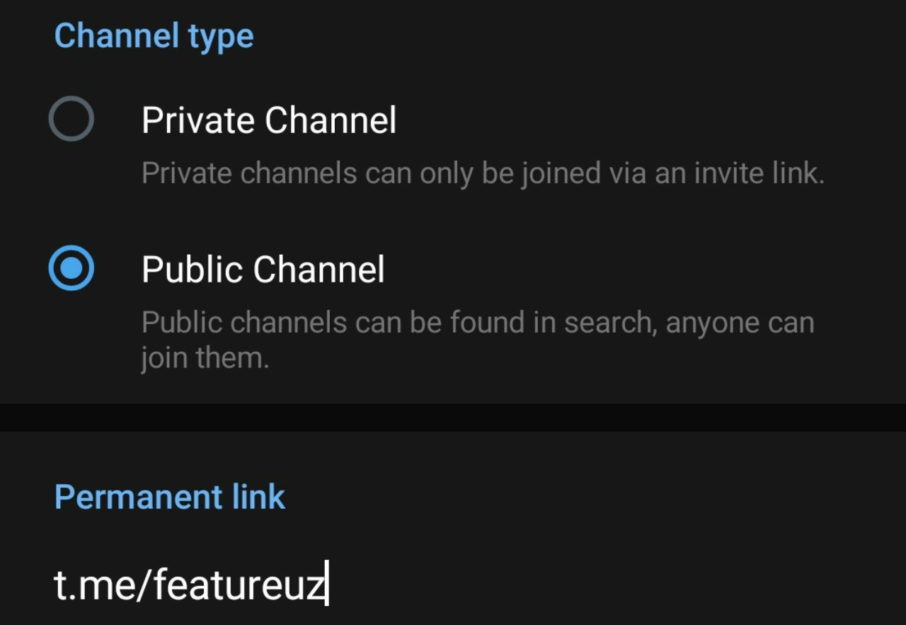 «Public» — kanalga obuna bo'lmasdan turib kanaldagi ma'lumotlarni ko'rib turishingiz mumkin.