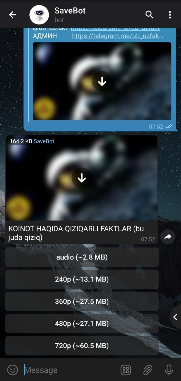 Ijtimoiy tarmoqlardan video yuklab olish uchun bot
