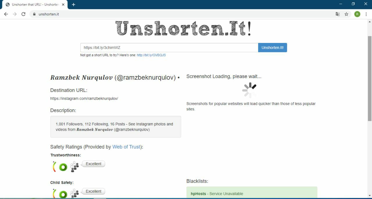 Agar, sizga shubhali qisqartirilgan havolalar haqida ma'lumot yoki qisqartirilgan havolalarni ochish kerak bo'lsa, saytdan foydalaning — Unshorten.it