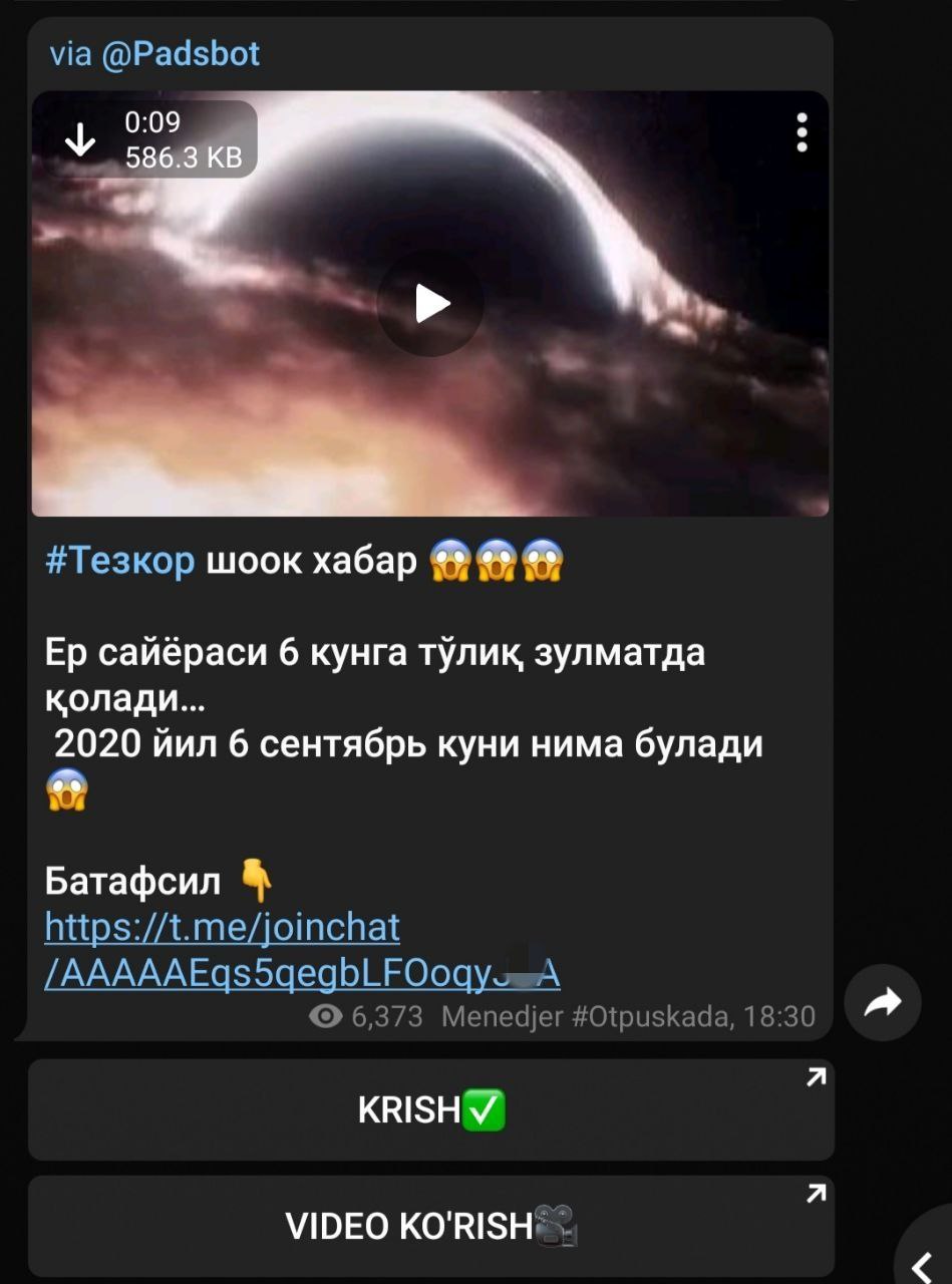 Endi rasmdagi kabi reklama matnlaridan foyda yo‘q. Kanalga avtomatik obuna endi ishlamaydi. Private kanalni obunasiz ham o‘qish mumkin. Odamlar endi bunaqa lovushkalarga tushmaydi.