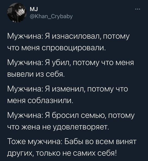 "Ну женщины же сильные, ты выдержишь" работает только тогда, когда женщине нужно терпеть какое-то овно от мужика или общества. Естественно во всех других случаях об этой силе внезапно забывают, называя женщин "слабым полом", вынуждая их играть в вымученную беспомощность, а от словосочетания "сильная и независимая" у общества и вовсе начинается злорадственный гыгы понос.