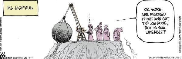 В этой ситуации оказывались Тереза Мей, Лиз Трасс, Джилл Абрамсон, Йоханна Сигурдардоттир и многие другие. Ирина Хакамада приводила примеры, когда воплощение самых рискованных и неприятных решений поручалось женщинам - потому что в мизогинном обществе всегда удобно выставить женщину мишенью для критики.