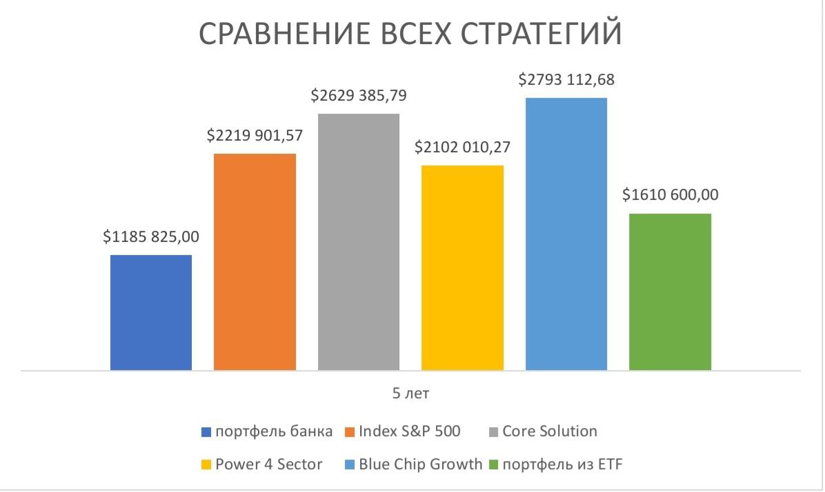 В общем, не удивительно, что за 5 лет подобное «предложение от швейцарского банка» сильно проигрывает по доходности даже по сравнению с типовым портфелем из ETF’s здорового инвестора, не говоря уж об активно-управляемых стратегиях.