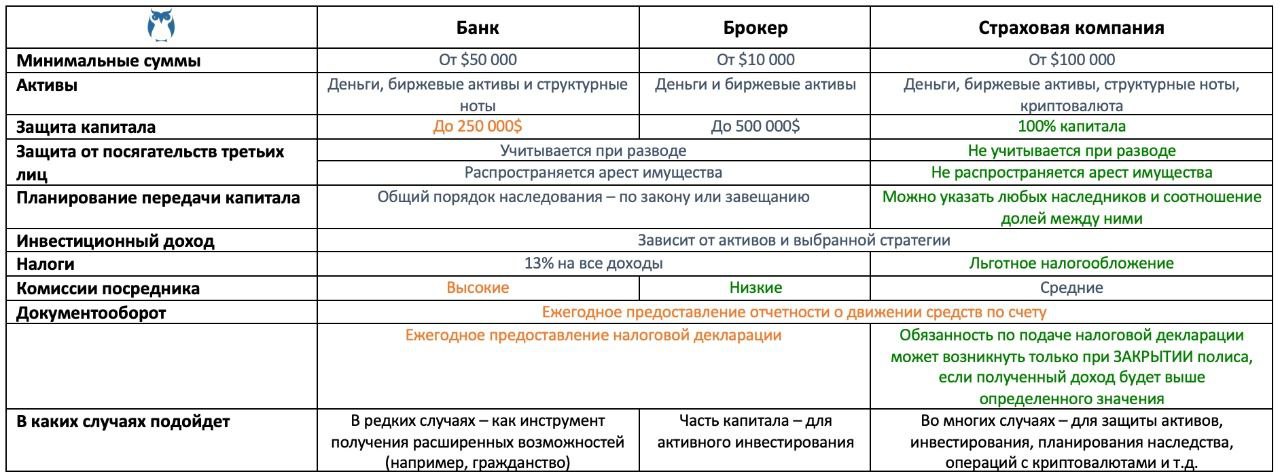📌 К слову, напоминаю, что с суммой от $50 тысяч можно открыть инвестиционный счет в страховой компании. На полис страхования не распространяется арест, он не подпадает ни под какие санкции, и потому на сегодня является самым надежным способом размещения средств. Более подробно на эту тему я говорила на вебинаре “Деньги, на выход!”, запись которого доступна всем зарегистрировавшимся.