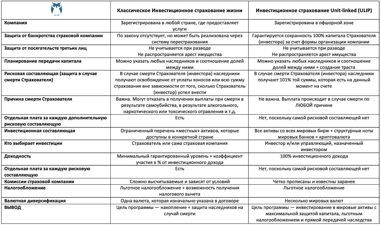 Классическое ИСЖ Vs Unit-linked