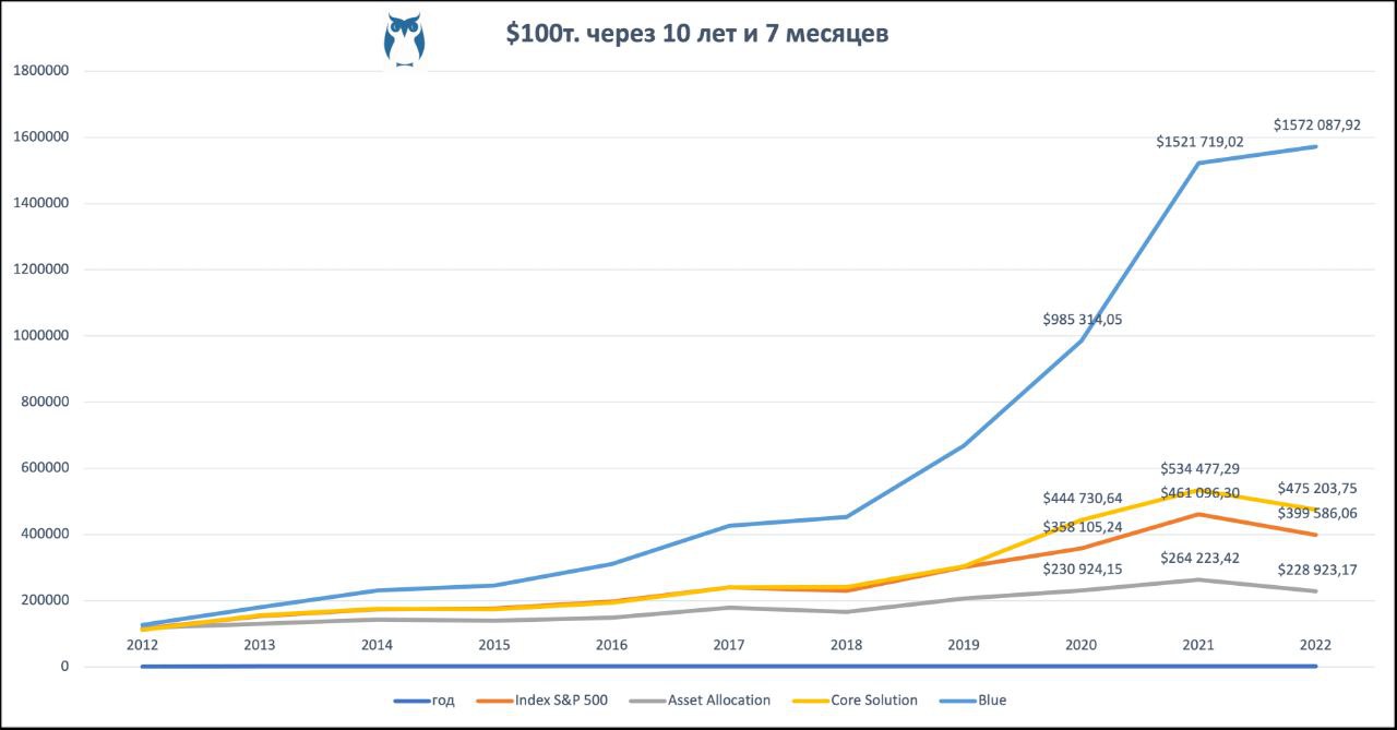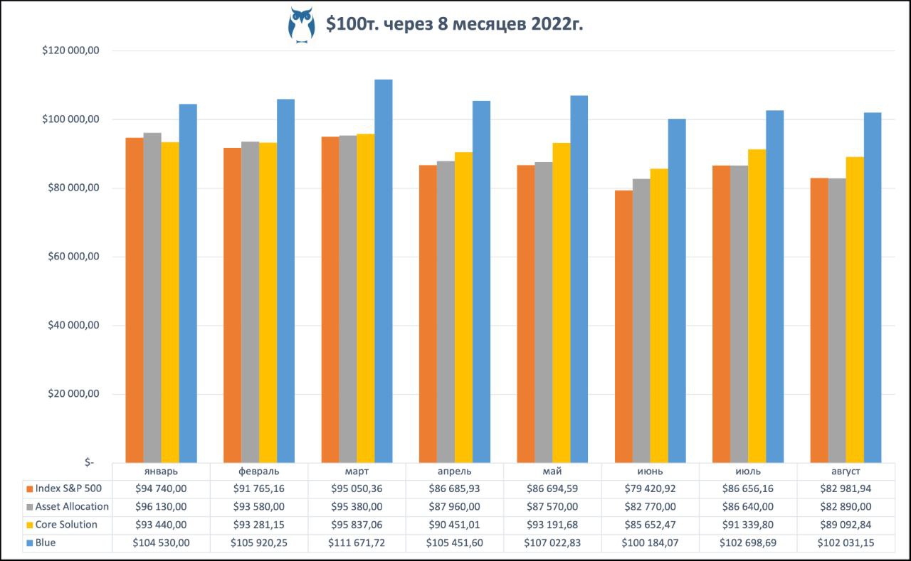 💎 Инвестиционный портфель с умеренным типом риска, составленный по всем принципам Asset Allocatoin, всё так же показывает “среднюю температуру по больнице”, приблизившись вплотную к показателям Index S&P 500.