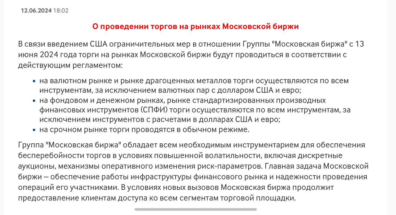 🔥 США ввели санкции против Московской биржи, НКЦ и НРД.