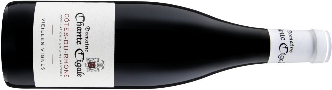 У «Domaine Chante Cigale Cotes du Rhone» глубокий гранатовый цвет. Во вкусе чёрные фрукты, шоколад, специи, звуки сухой земли.