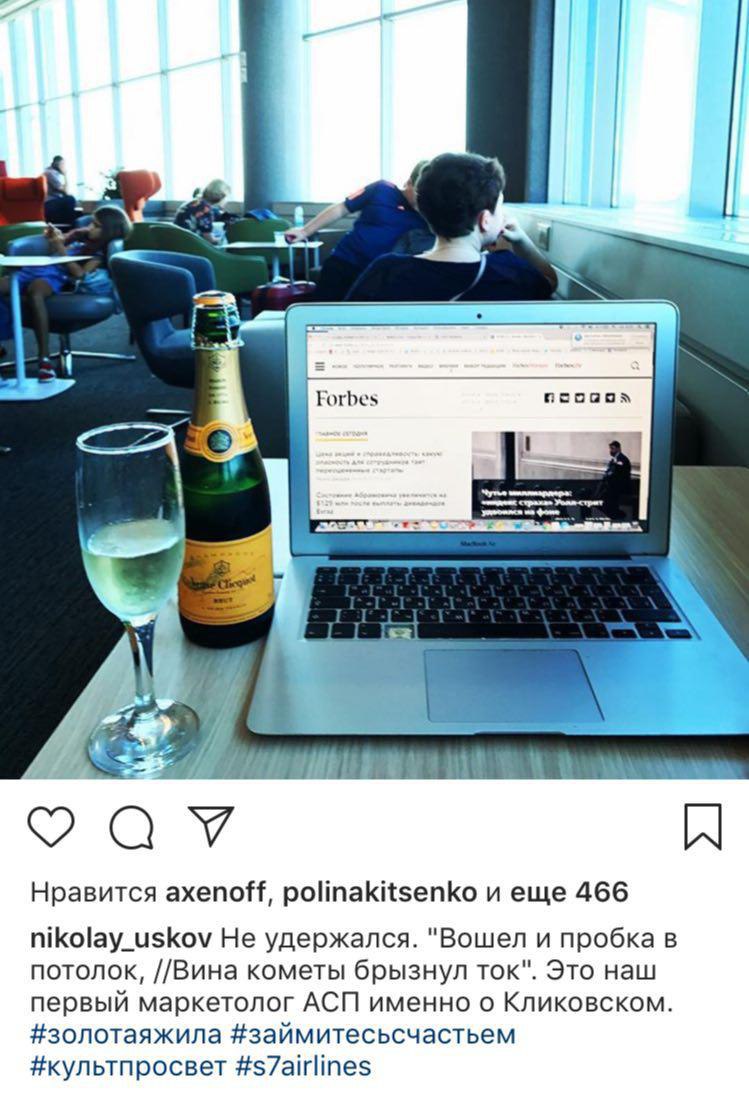 Уже вернулся, судя по фото в его инстаграме. «Вдова Клико» помогает расположиться в директорском кресле.