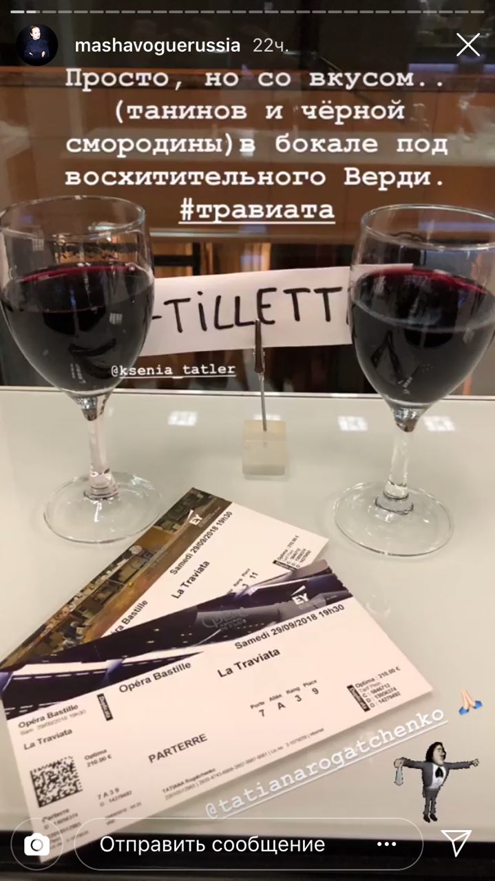 Главный редактор журнала Vogue Маша Федорова вчера после показов Недели моды в Париже посетила оперу в компании с главным редактором Tatler Ксенией Соловьевой.