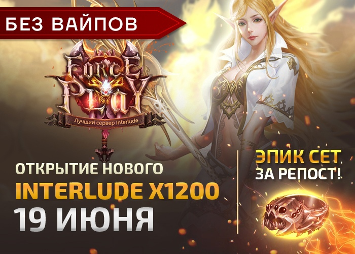 Так-же, что бы привлечь новых игроков к нашему проекту и сделать очередное слияние - Открытие нового ForcePlay.ru x1200 назначено на 19.06, ждём всех!