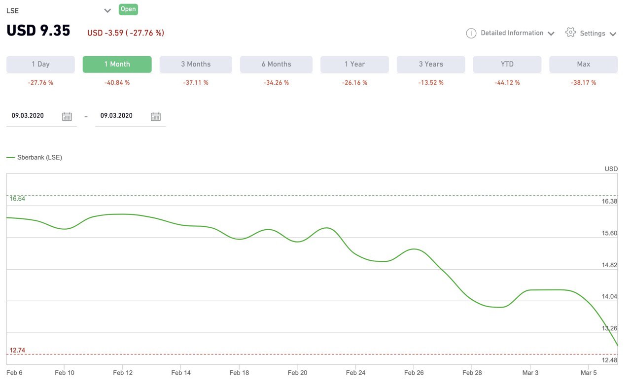 Акции Сбербанка в Лондоне сегодня снизились на 27%