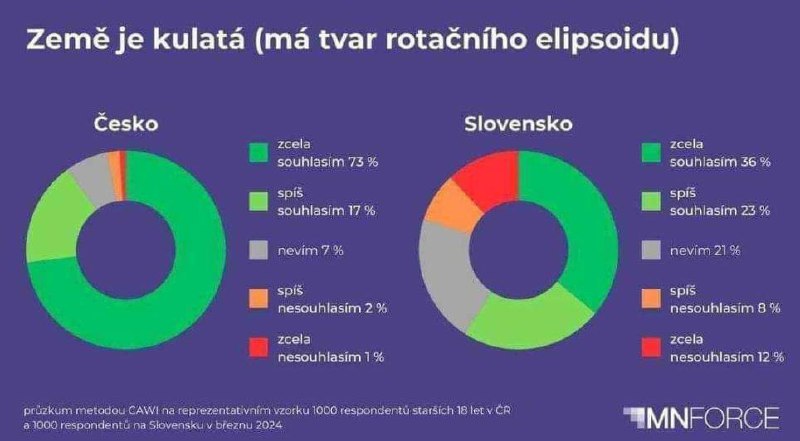 В Словаччині тим часом з круглою Землею згодні лише 59%, ще 21% не знають, а 20% не згодні