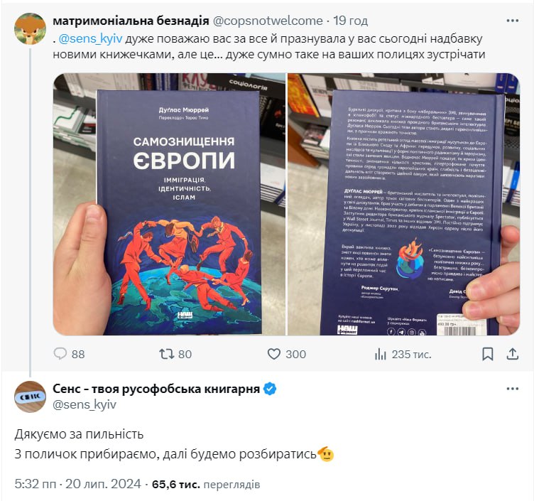 Хер зна хто з тирнету написав, що неподобство продавати книги, які мені не подобаються, і книгарня знімає книгу.