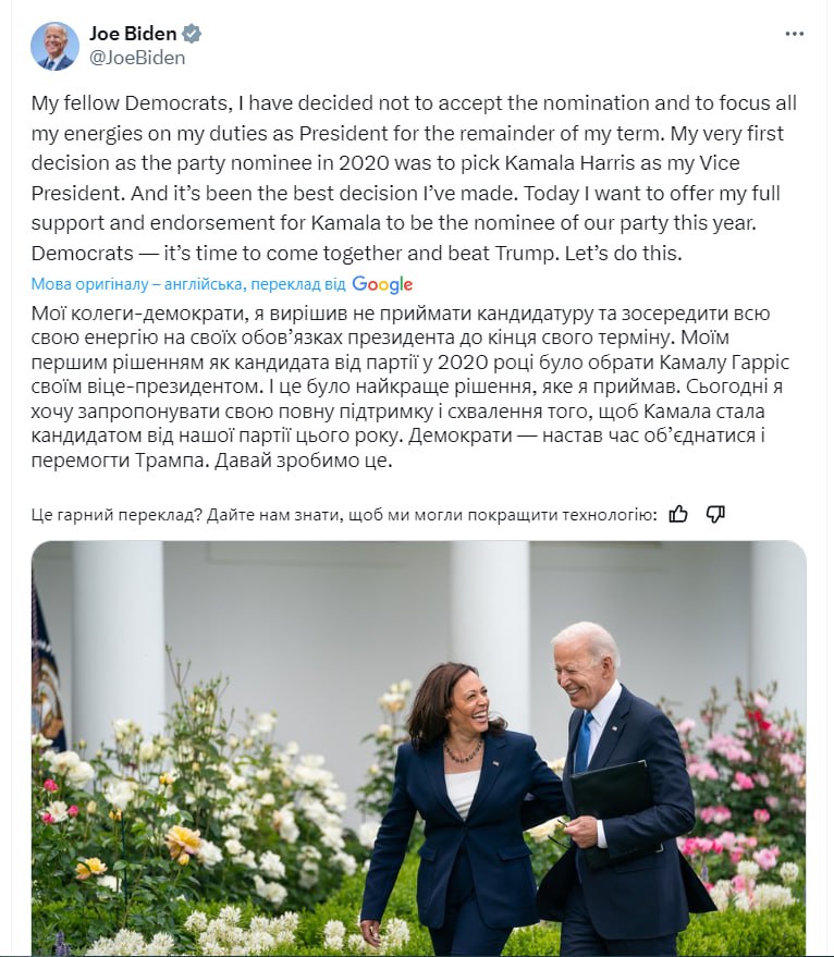 Джо Байден знявся з передвиборчої гонки