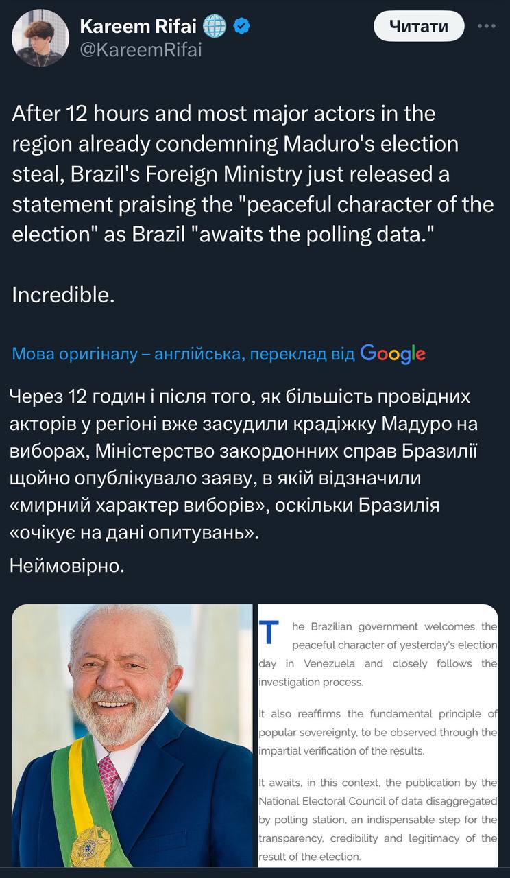 А результат як завжди очікуваний і передбачуваний. І він буде таким і для ізраїльских реалполітіків, і для американських, і для українських, і навіть для ліхтенштейнських 🤷♂️