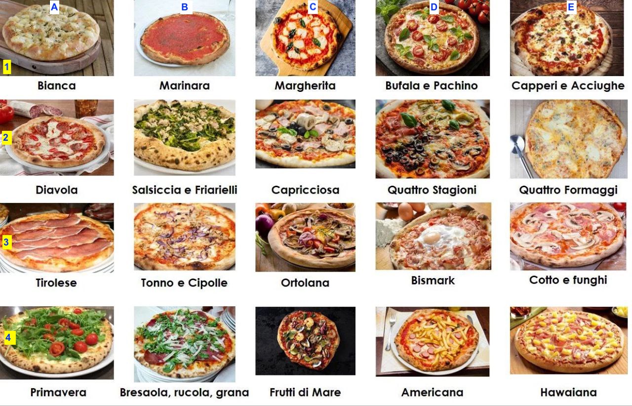 Предлагаю попробовать вам угадать победителя, которого мы узнаем через чуть меньше чем 3 недели. Поскольку 19 вариантов в голосование в телеграме не уместить, то предлагаю указать координату пиццы: столбец (от А до Е, слева направо) и линию (от 1 до 4, сверху вниз). Например, если вы ставите на победу пиццы '4 сыра', то голосуйте за '2' и за 'Е'