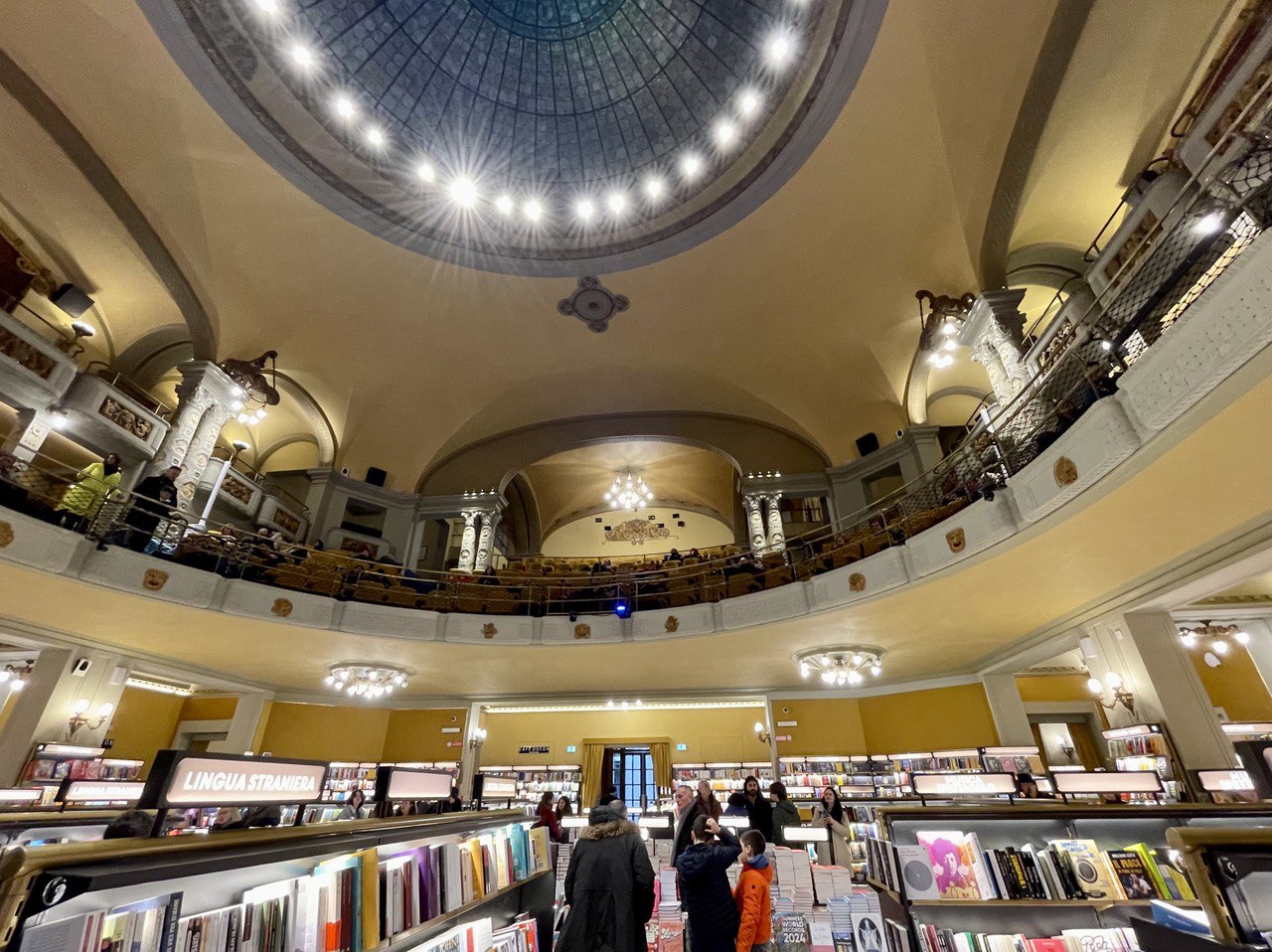 В общем – советую вам обязательно заглянуть туда! Можно погулять по книжному, посидеть в кафе или посмотреть кино (в том числе в оригинале с субтитрами, что для Флоренции редкость) или просто прийти полюбоваться красивыми интерьерами в стиле модерн.