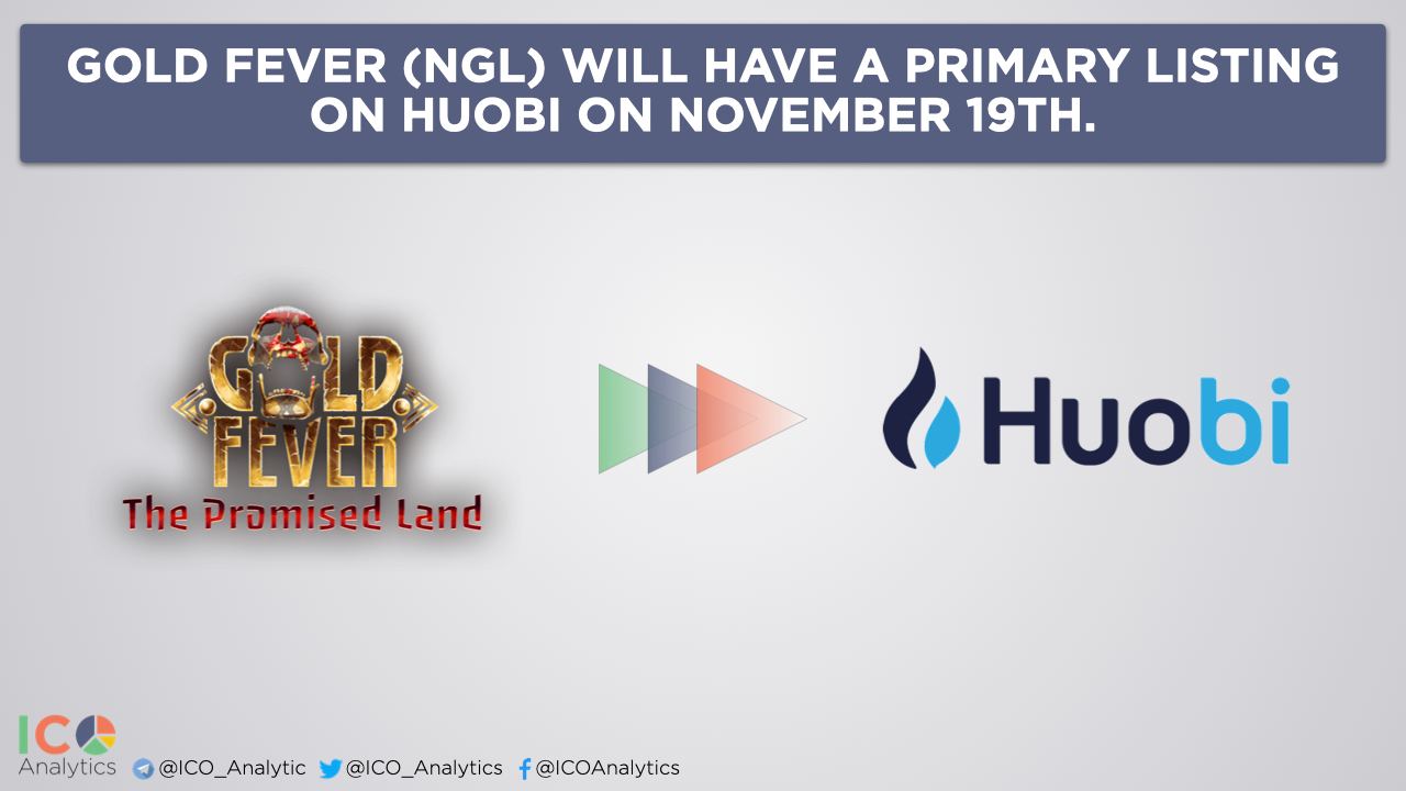 ββGold Fever (NGL) will have a primary listing on Huobi today. It will follow the public sale round that will start at 10:00 am (UTC). NGL/USD trading pair will go live at at 1:00 pm (UTC). ICO price on Huobi: $0.145.