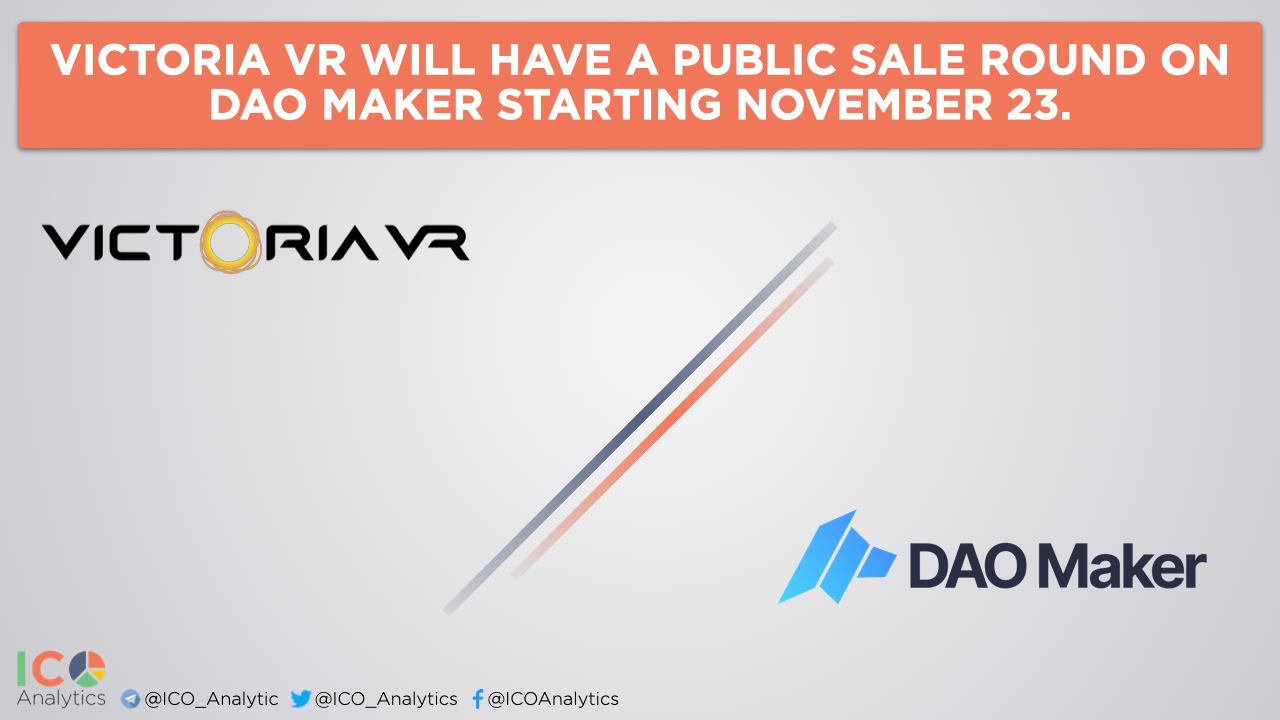 ββVictoria VR will have a public sale round on DAO Maker starting November 23. $100K worth of VR tokens to be sold. Vesting: 50% at TGE & 50% after 4 month cliff. The startup will enter the market with $1.96M initial market cap. Victoria VR aims to build a MMORPG in virtual reality with its own NFT marketplace.