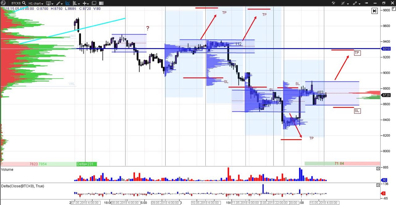 🚀Торговая система «Футпринт». Прогноз на 14.05.18 по Bitcoin.