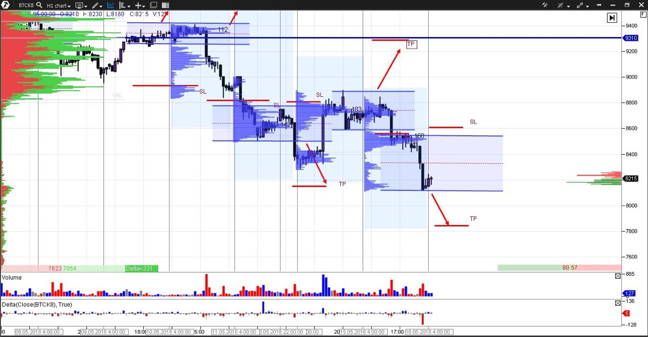 🚀Торговая система «Футпринт». Прогноз на 15.05.18 по Bitcoin.