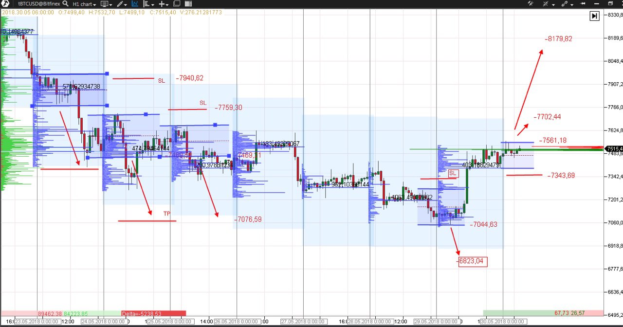 🔥Торговая система «Футпринт». Прогноз на 30.05.18 по Bitcoin.