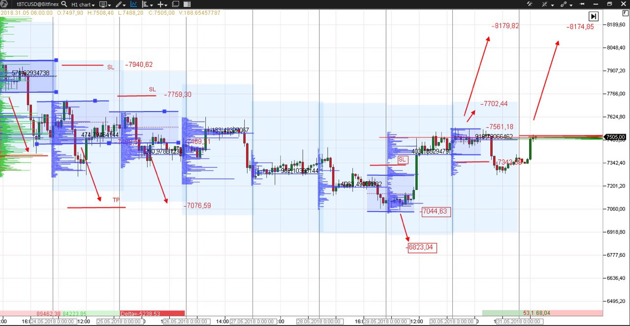 🚀Торговая система «Футпринт». Прогноз на 30.05.18 по Bitcoin.