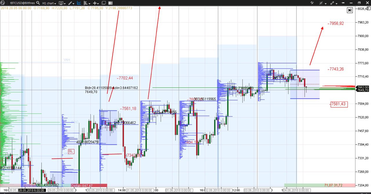 🚀Торговая система «Футпринт». Прогноз на 1.06.18 по Bitcoin.