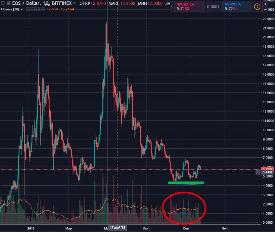 В среду, 26 сентября одна из крупнейших бирж - Bitfinex представит бета-версию EOSfinex на конференции Blockchain Live в Лондоне. Это, вероятно, получит значительный интерес со стороны инвесторов и послужит хорошим топливом для роста EOS. Монета находится рядом с мощной линией поддержки - 4.5$. Так же произошло накопление позиций крупным игроком, диапазон накопления - 4.6-5.2$