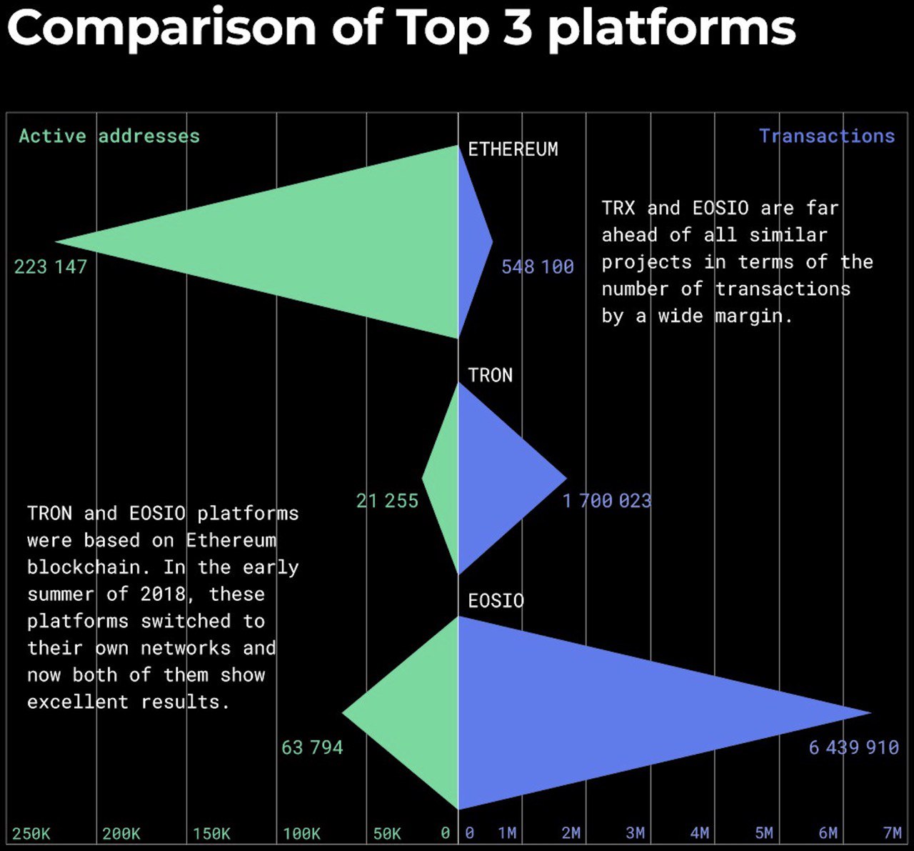 ➖ порядка 200 Dapps на EOS запустились в последние 5 месяцев.