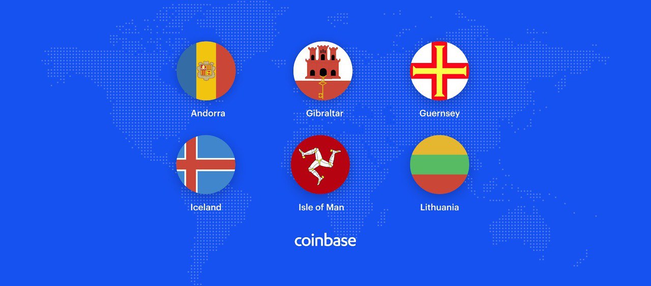 Coinbase теперь предоставляет услуги резидентам островов Гернси и Мэн, Литвы, Исландии, Андорры и Гибралтара. Пора устраивать голосование кто получит доступ к бирже раньше: представители СНГ или банановая республика Конго...