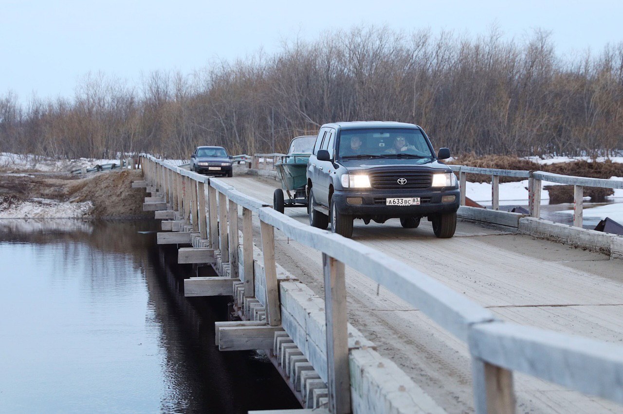 Речь идет о мосте через реку Лесозаводская курья на автомобильной дороге Нарьян-Мар – посёлок Искателей и мостовом сооружении через реку Колва на дороге Нарьян-Мар –Усинск между посёлком Харьягинский и границей округа 🌉